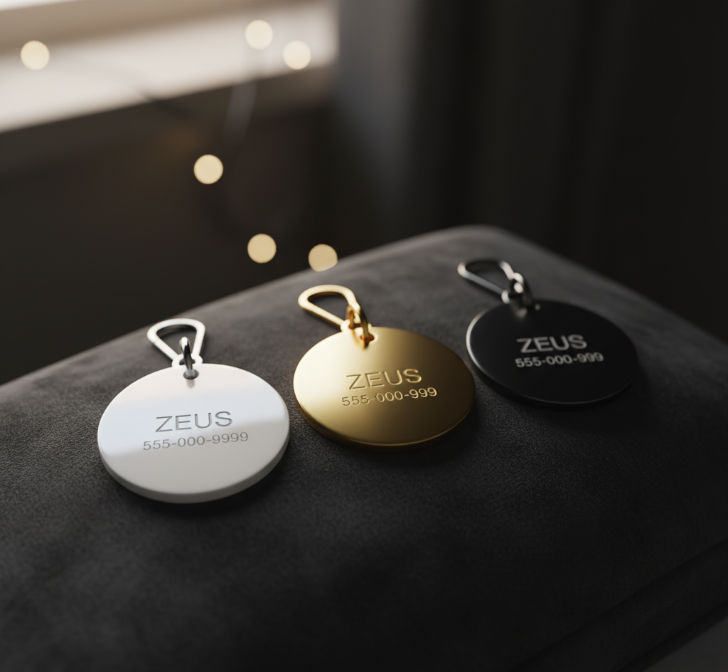 Style meets peace of mind. Our durable, custom-engraved ID tag ensures your best friend always has their way back to you.